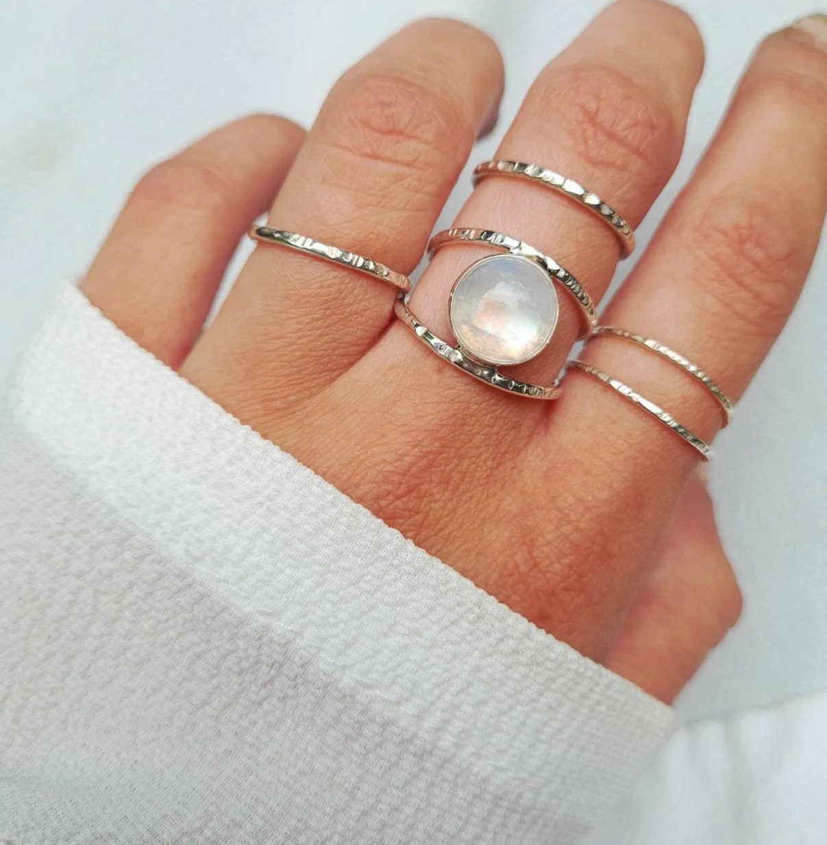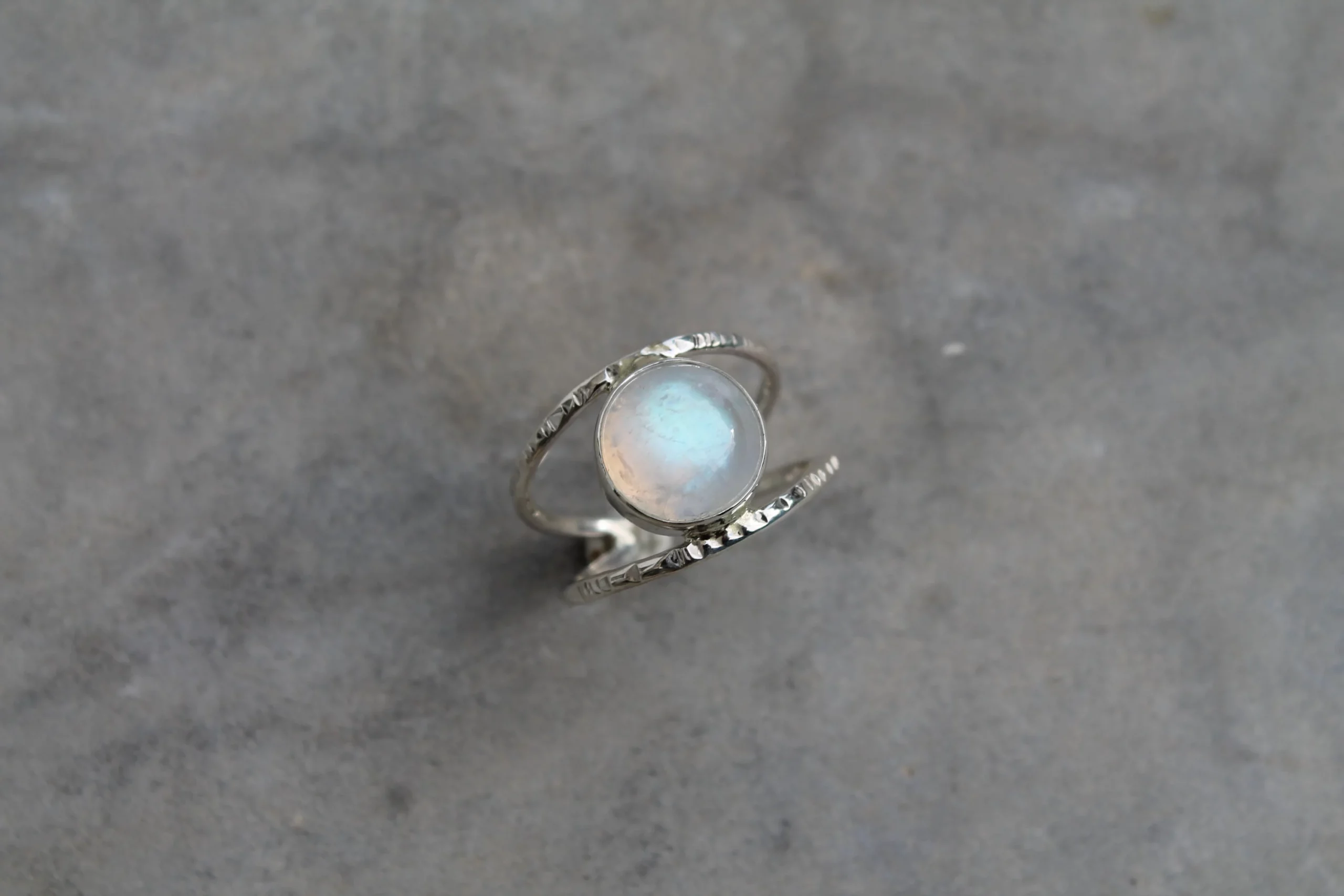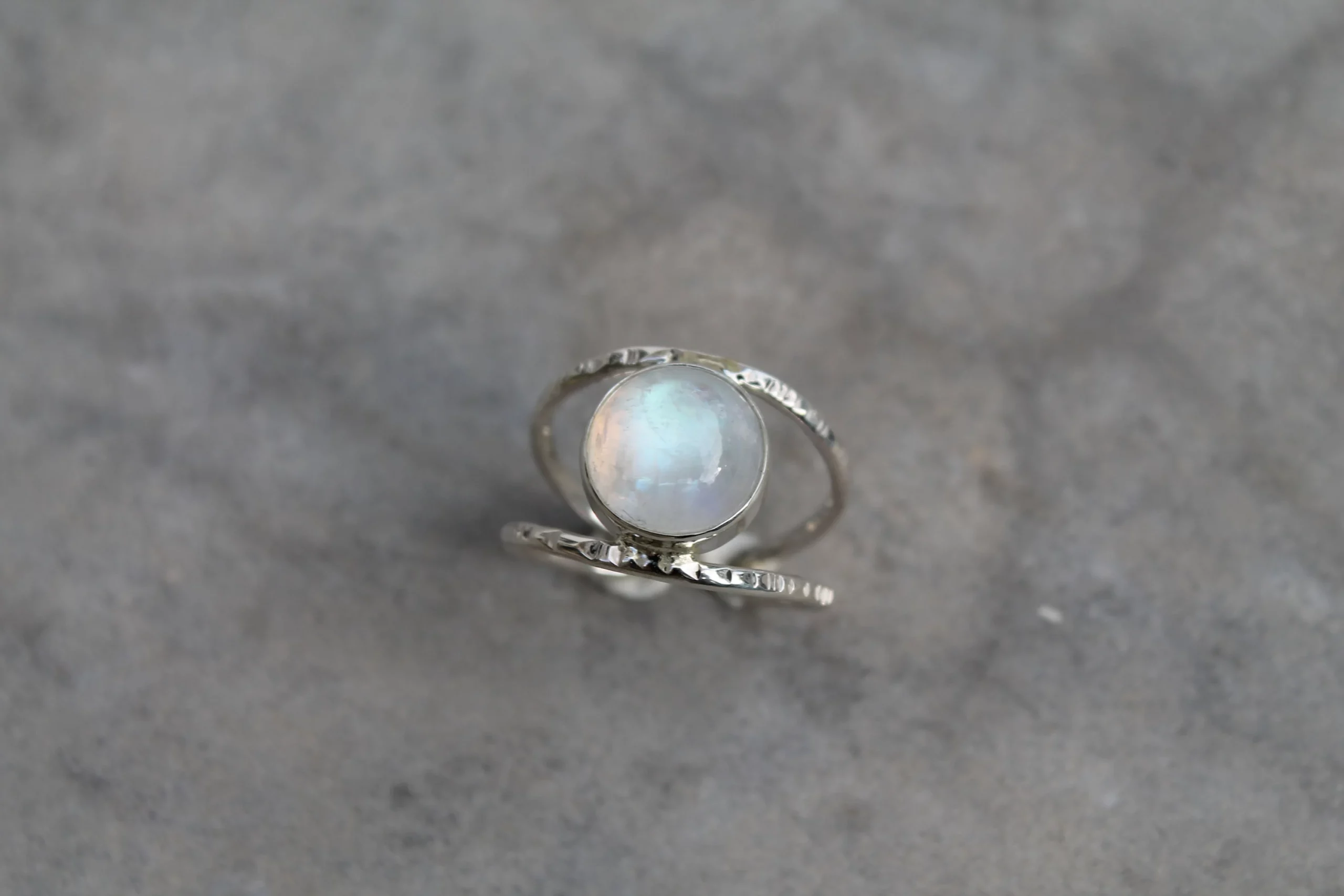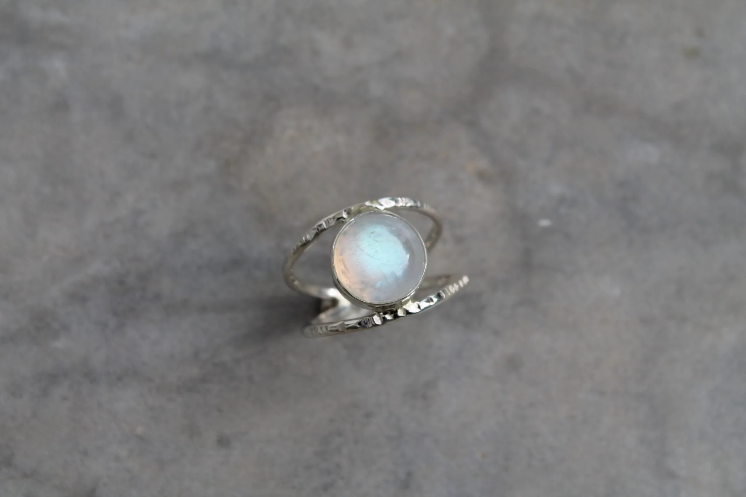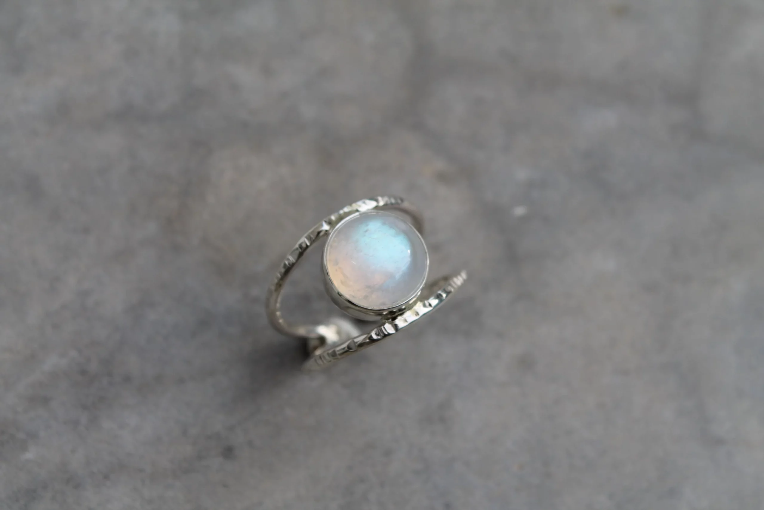 Bague martelée et pierre de lune en argent 925