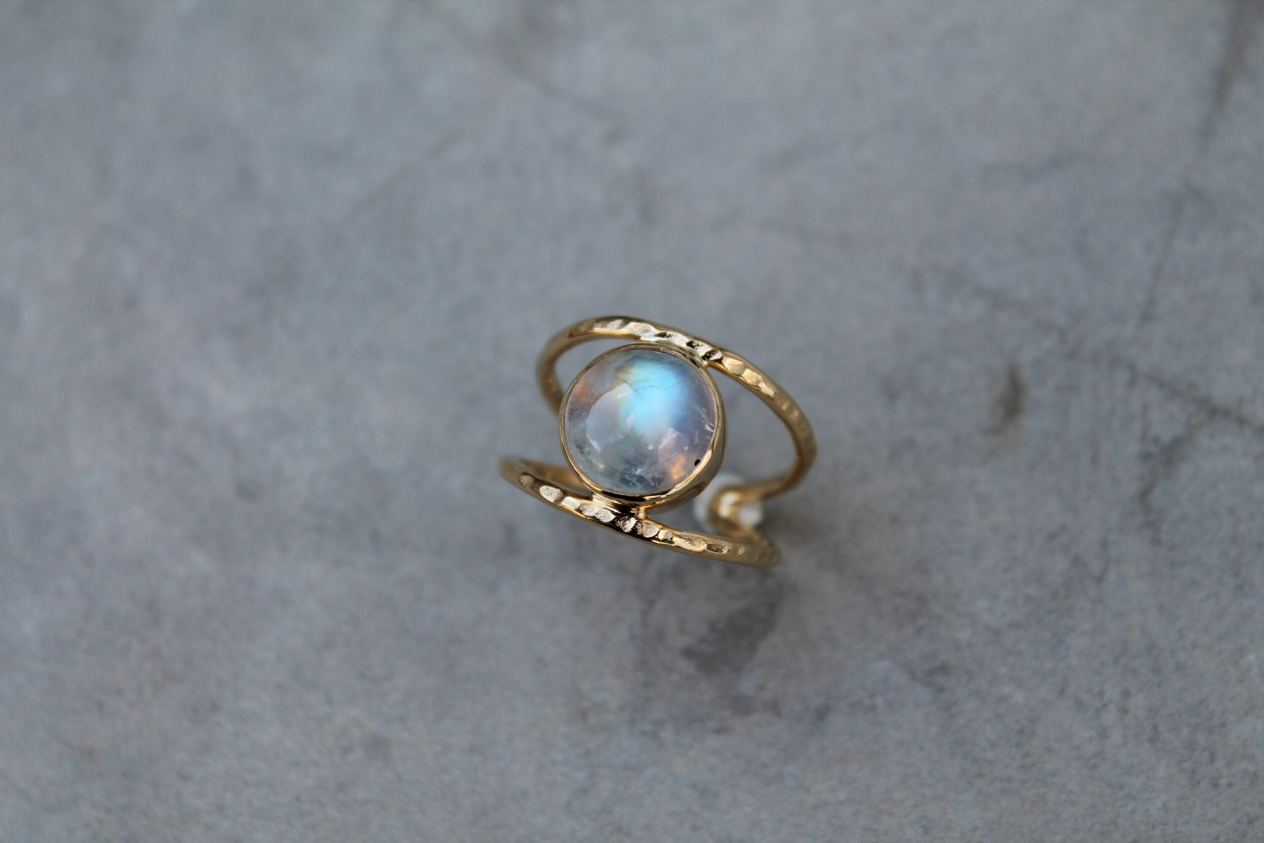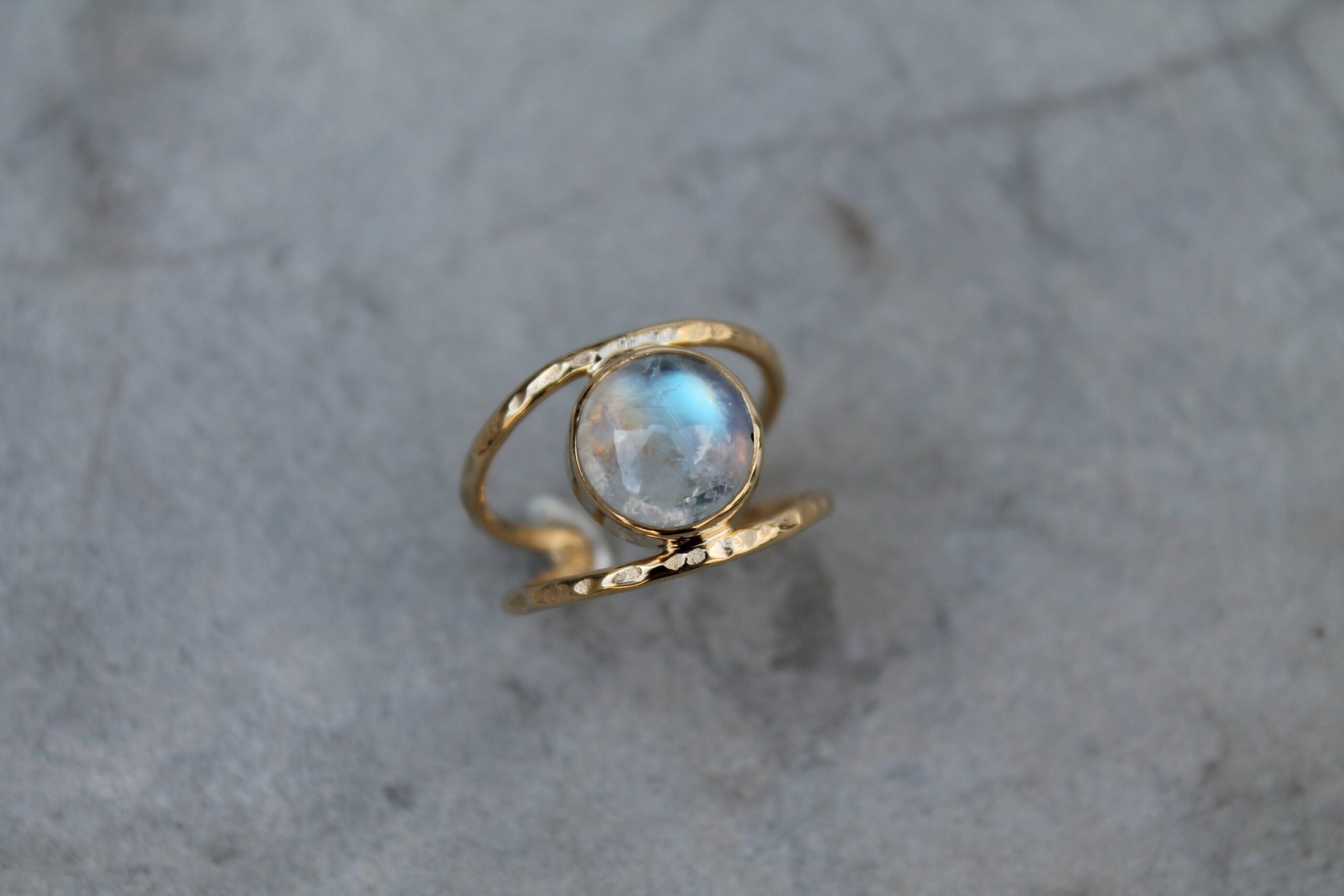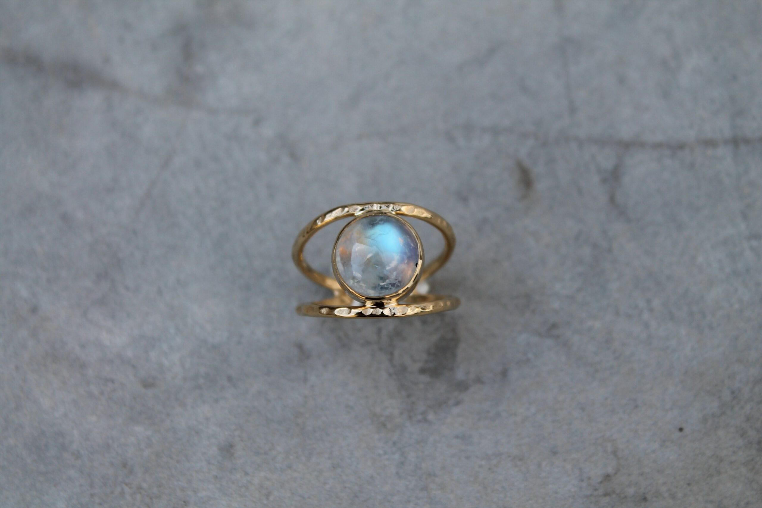 Bague martelée et pierre de lune