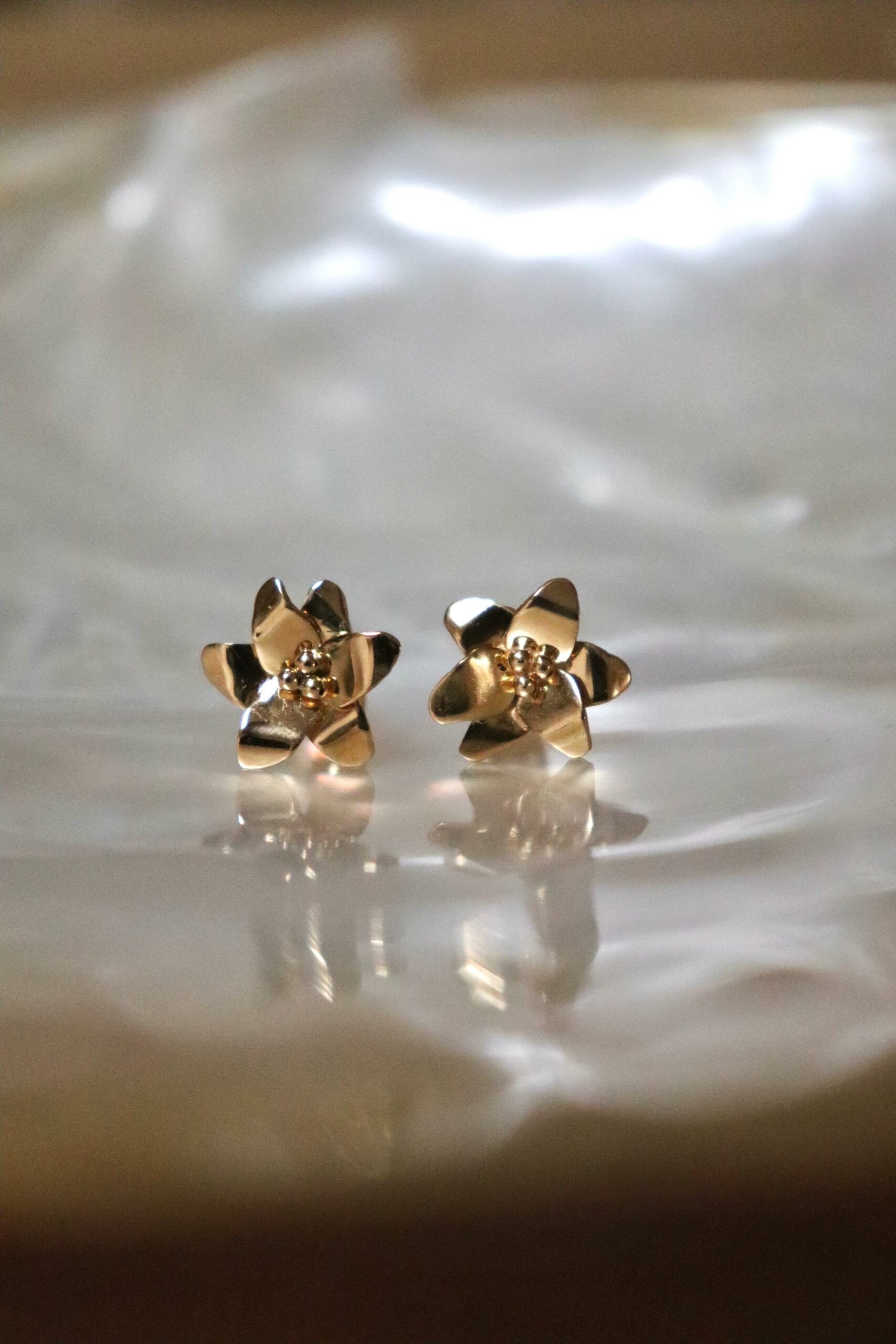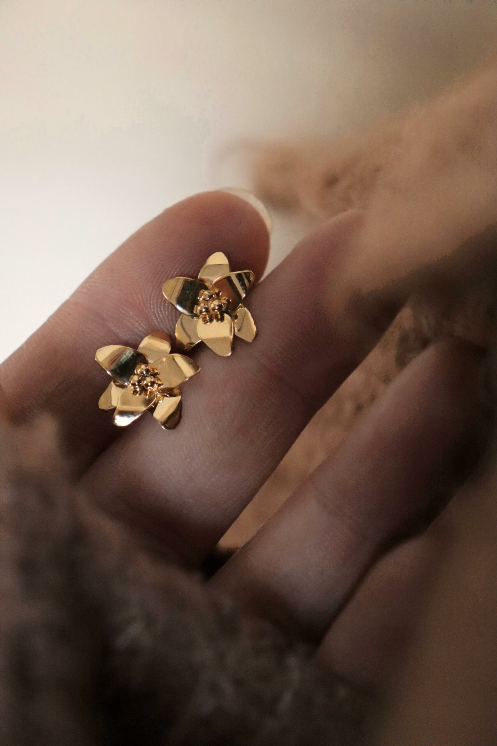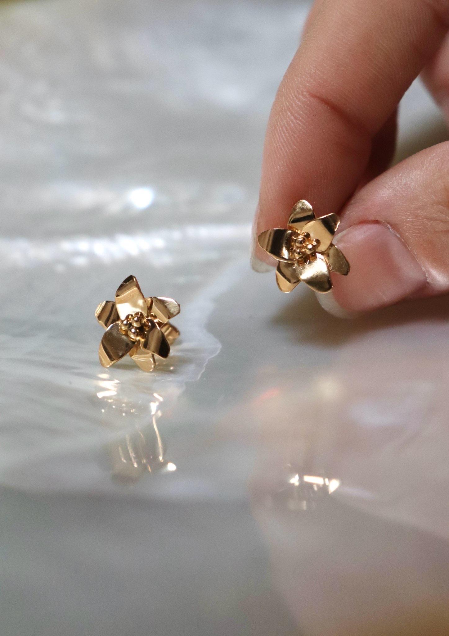 Boucles d’oreilles plaquées or ornées de fleurs de lys entièrement fabriquées à la main.