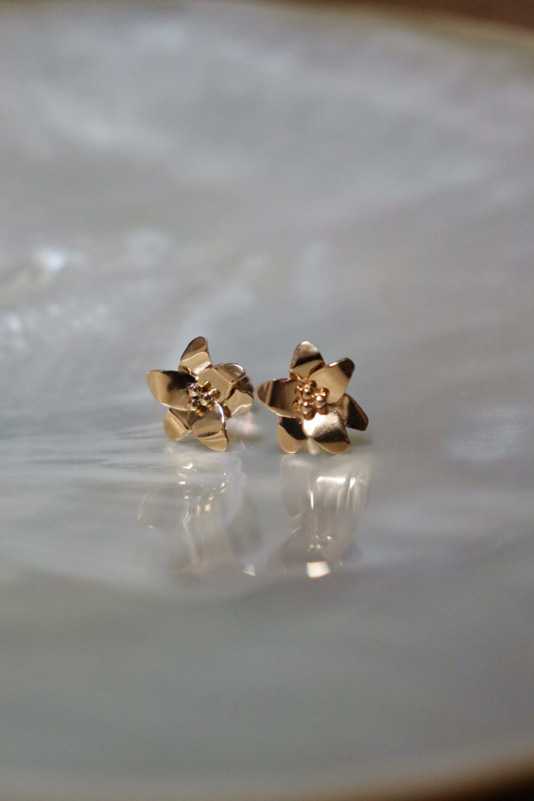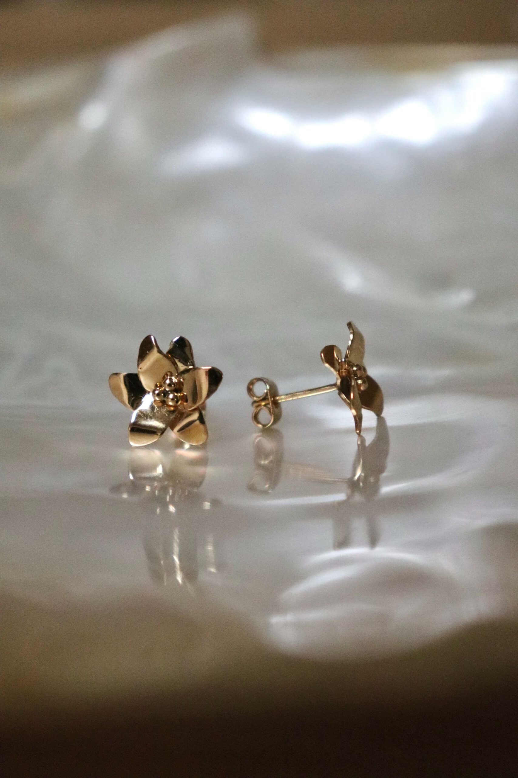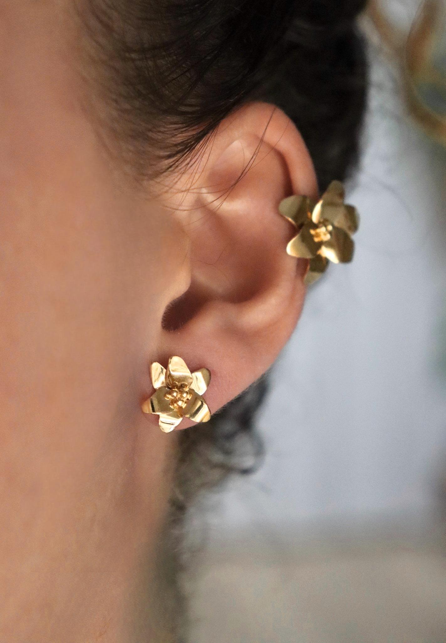 Boucles d’oreilles plaquées or ornées de fleurs de lys entièrement fabriquées à la main.