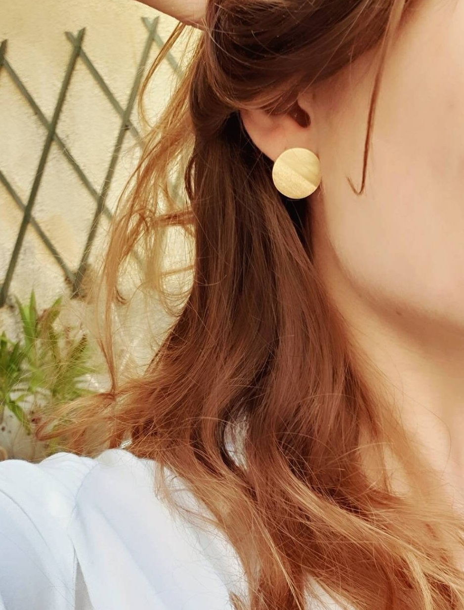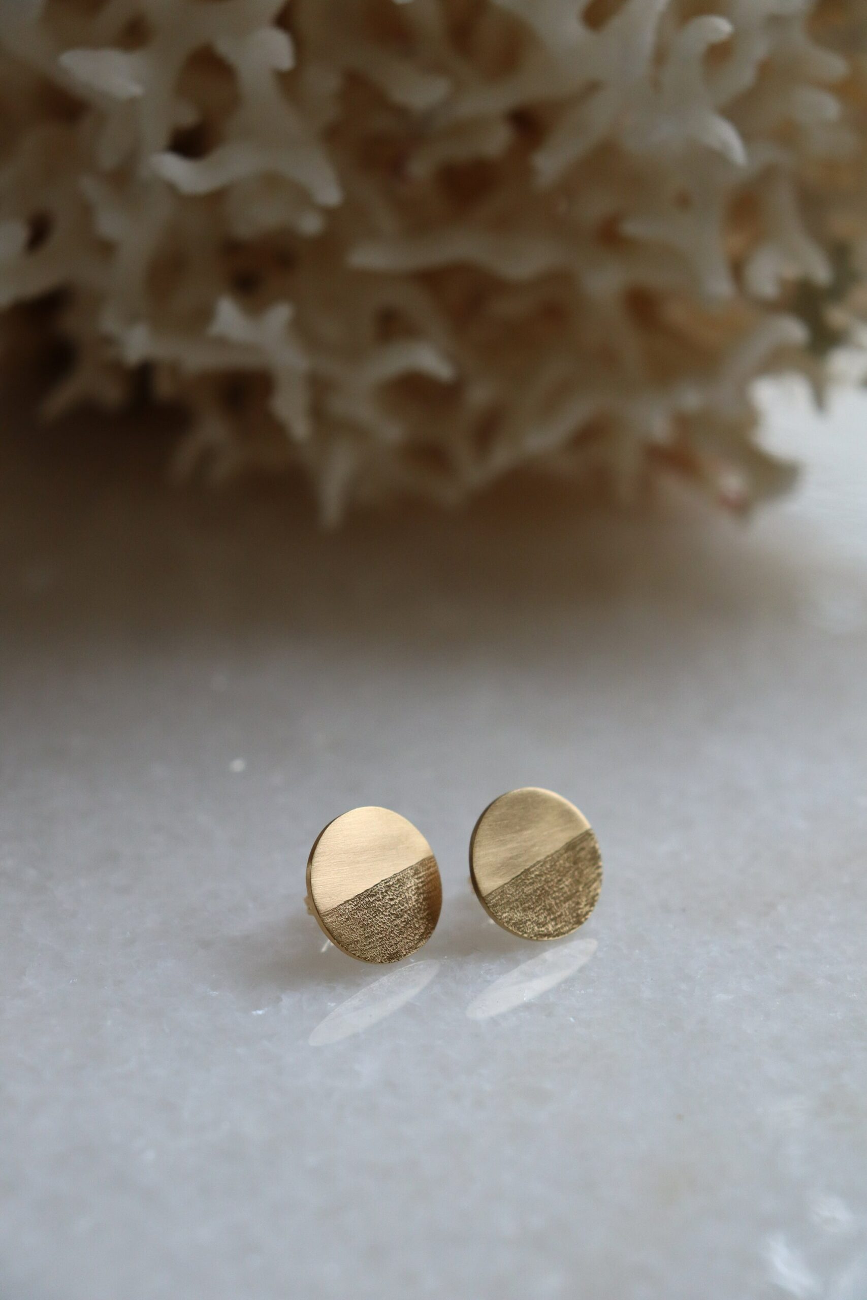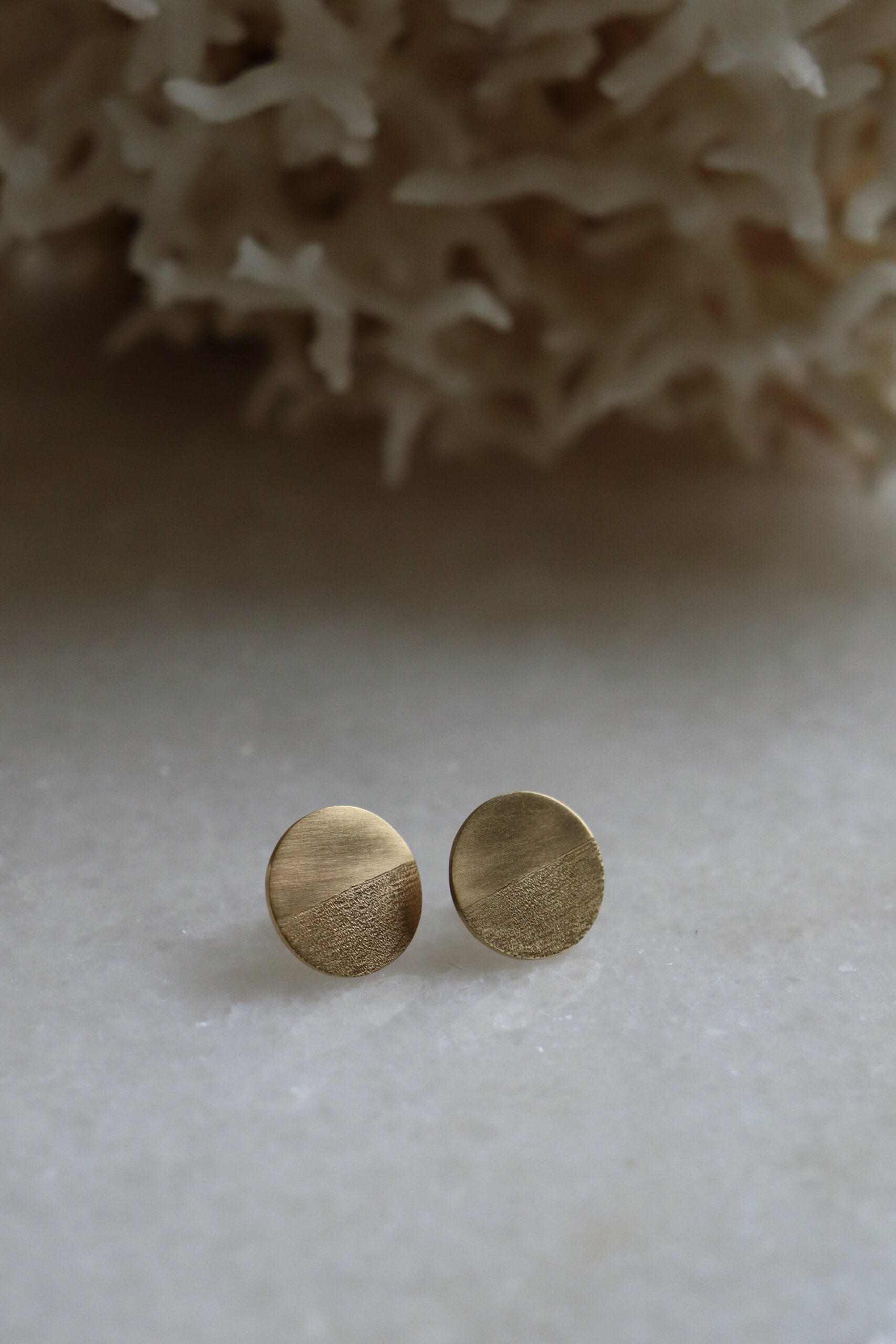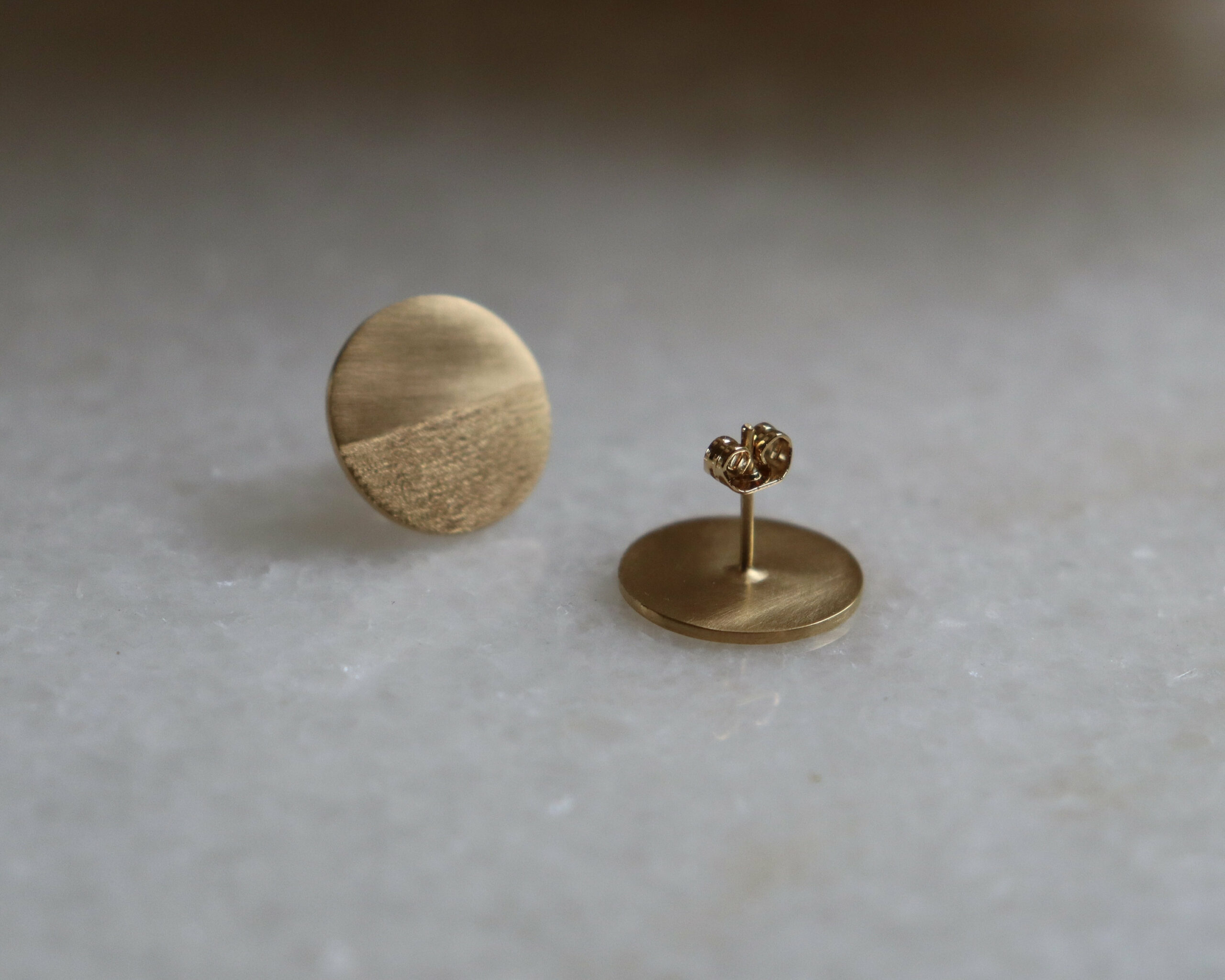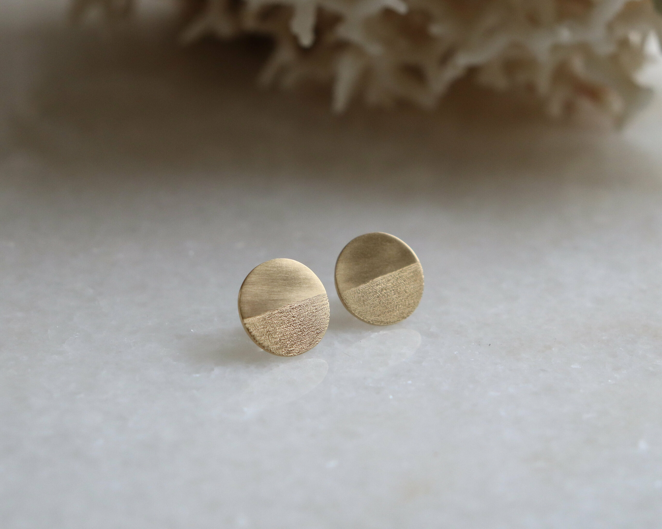 Boucles d’oreilles rondes plaquées or, avec un effet brossé et gravées