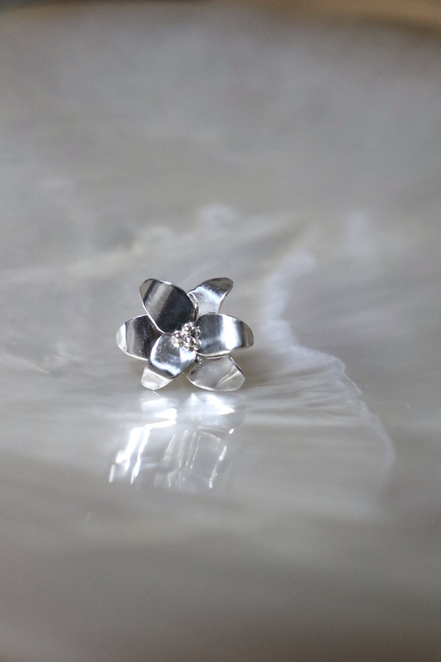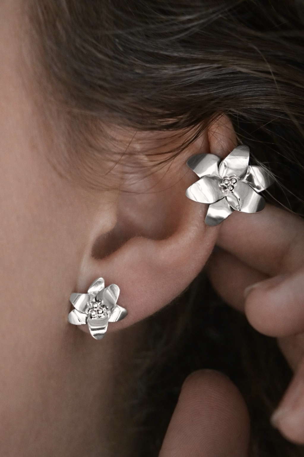 Earcuff en argent 925 orné d’une fleur de lys, s’ajuste sur l’oreille grâce à un anneau réglable.