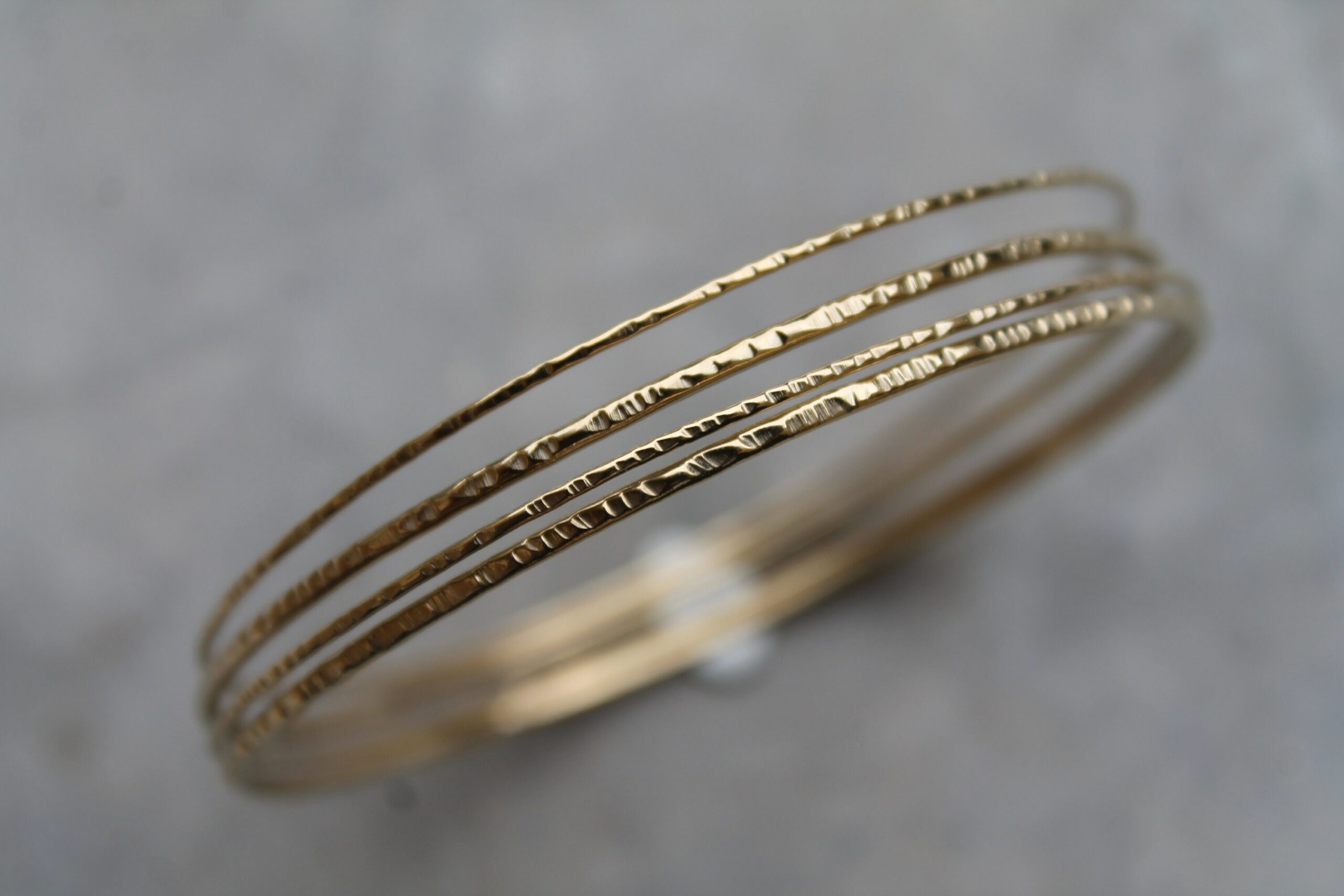 Quatre joncs plaqués or et martelés